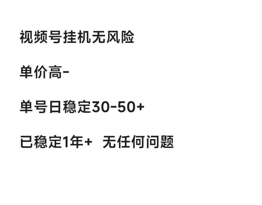 视频号挂机无风险-单价高-单号日稳定30-50+