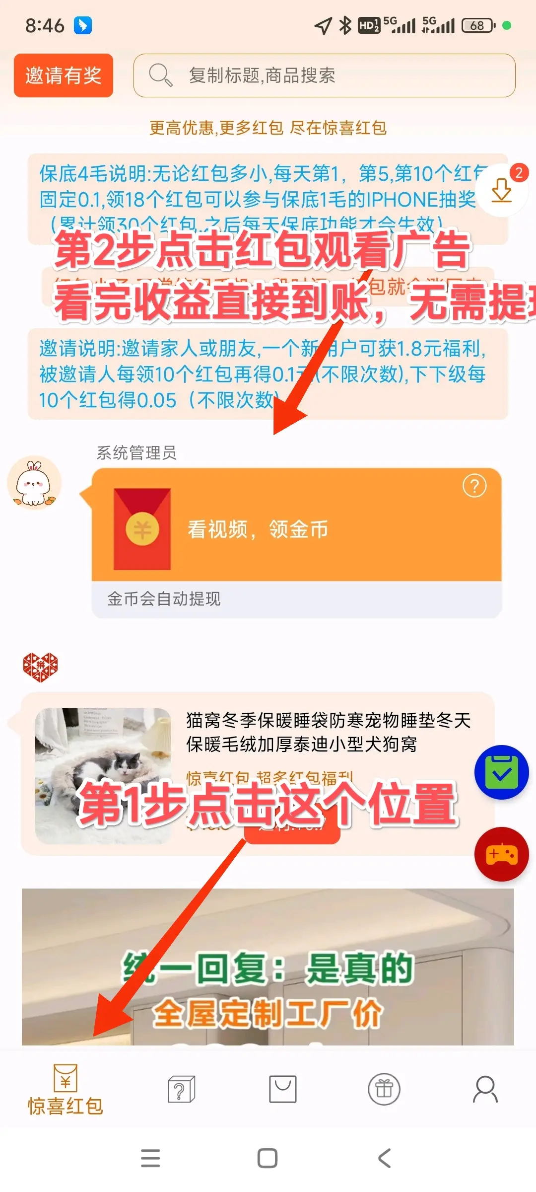 惊喜红包-无限看广告-单个广告0.1-0.3-无需养鸡